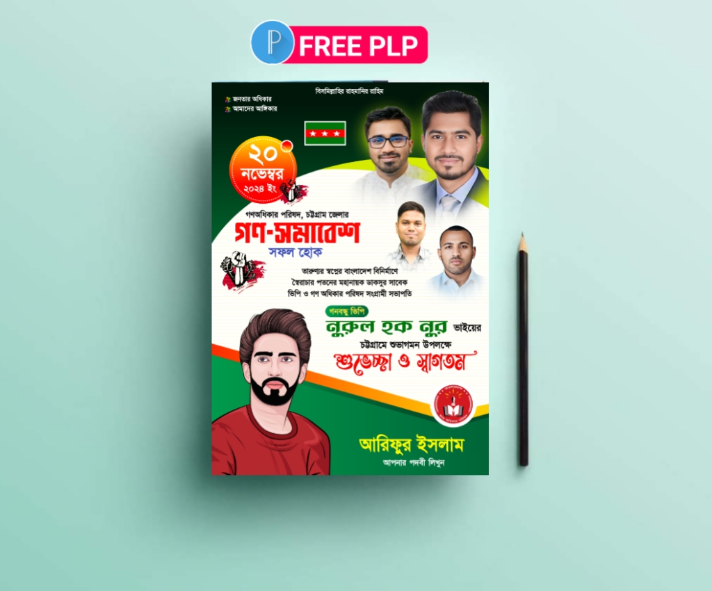 Welcome to our Plpfree24.com Design Blog. From this blog of ours today you can easily download "গণ অধিকার পরিষদ প্রতিষ্ঠা বার্ষিকী পোস্টার ডিজাইন" PLP file absolutely free. Plpfree24.com website is one of the most popular PLP file download sites around the world.
